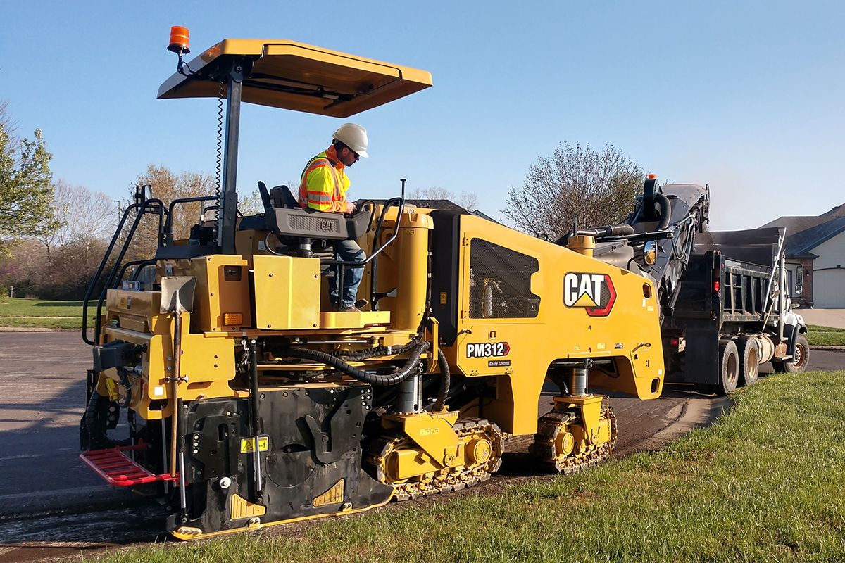 The Cat PM312 is an efficient, highly maneuverable milling machine with a cutting width of 1225 mm (48.2 in) that performs controlled full-depth removal of asphalt and concrete pavements in a single pass. Integrated Cat GRADE and the latest System K rotors deliver performance, productivity and cutting precision. A comfortable operator environment puts intuitive controls at your fingertips, while long service intervals and easy maintenance access simplifies service. While designed for a single operator, the PM312 includes added features for supporting ground personnel. Many options are available to enhance machine versatility when optimum maneuverability or high production capabilities are required.
