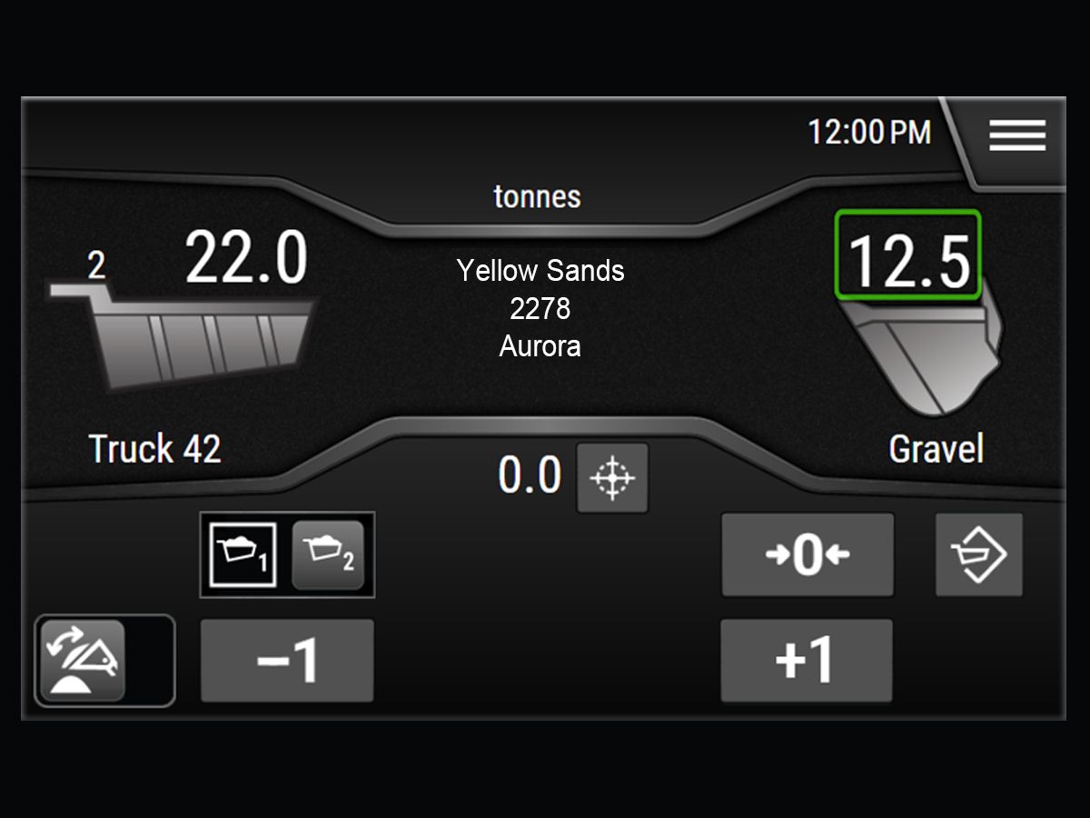 - Easily tip-off excess material on the last pass with real-time weight estimates for precise loading - eliminate under / over loading.